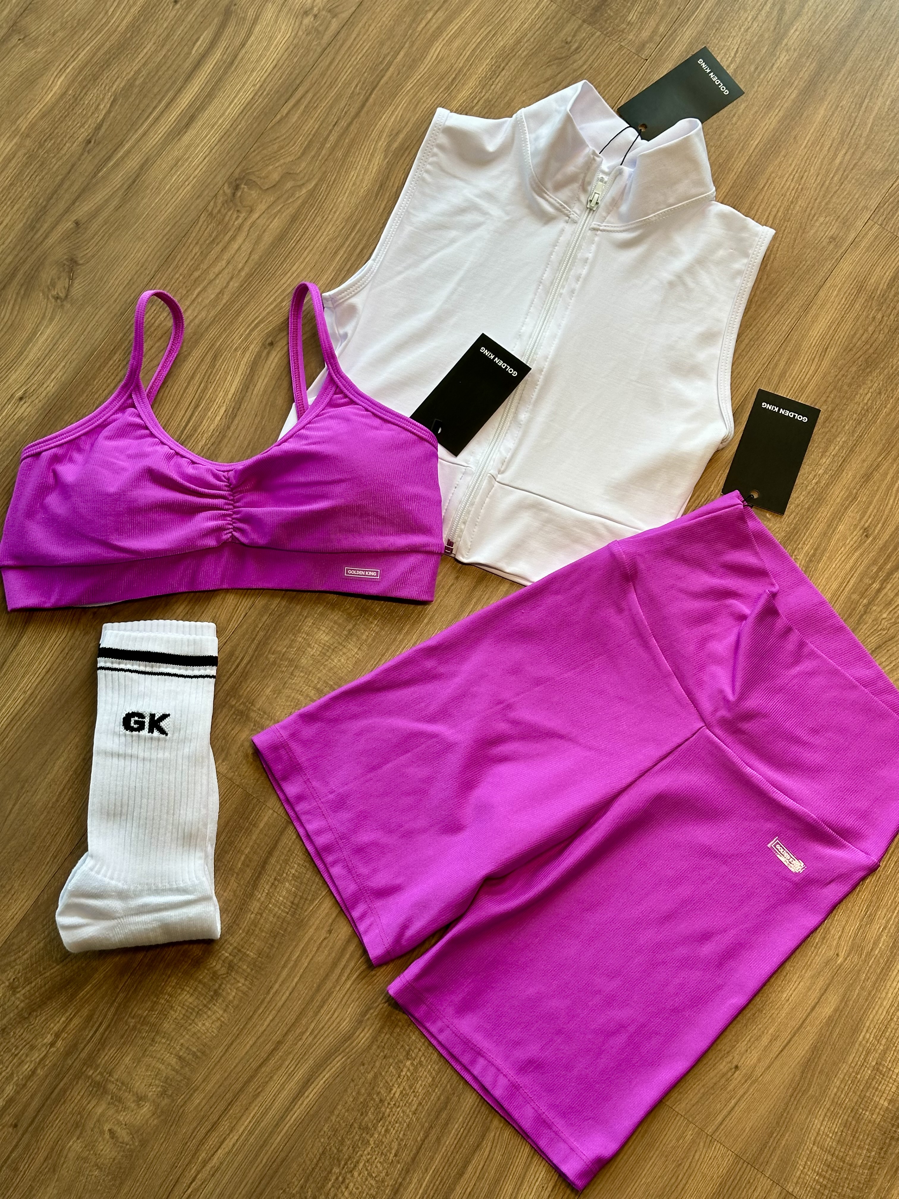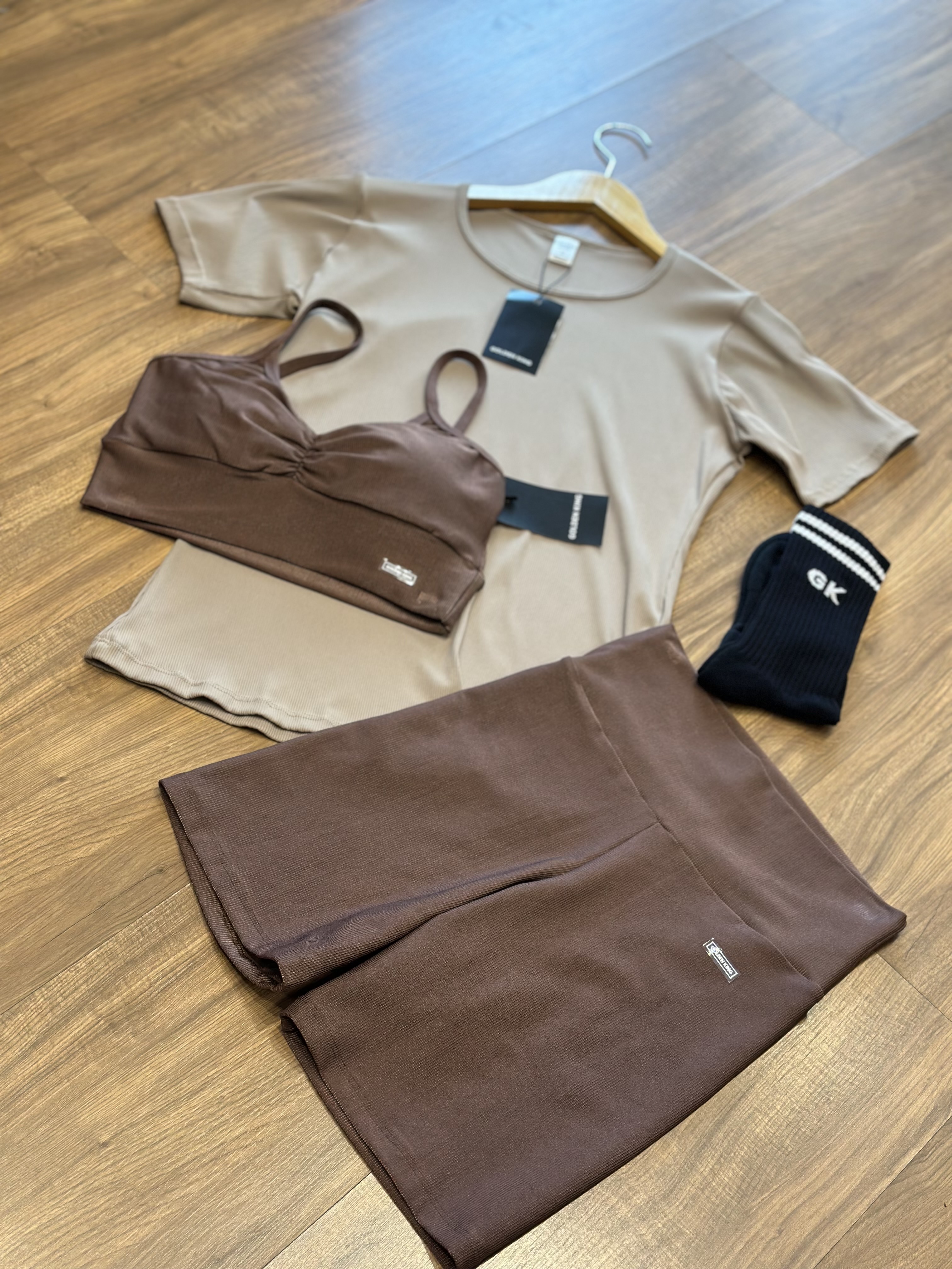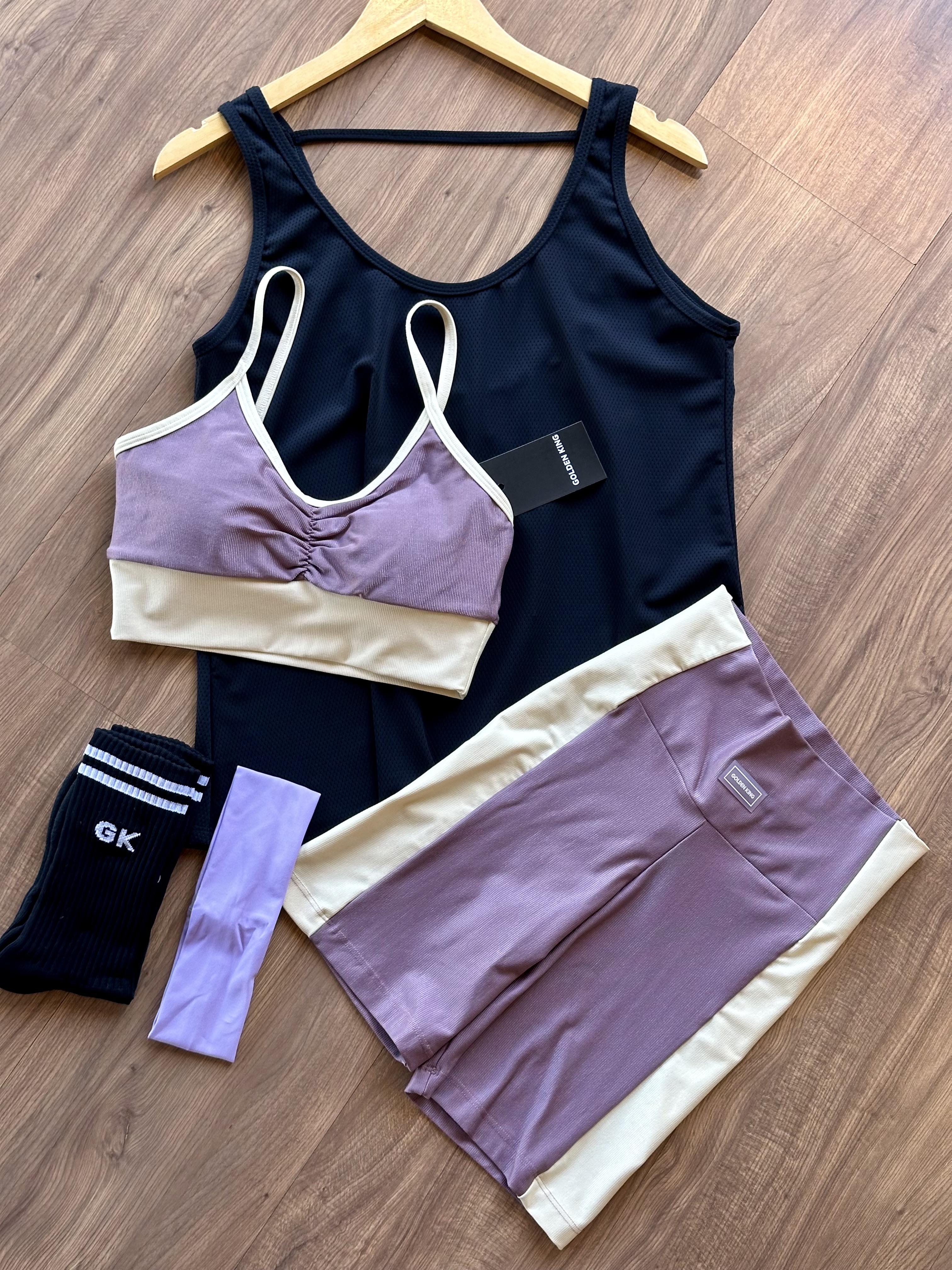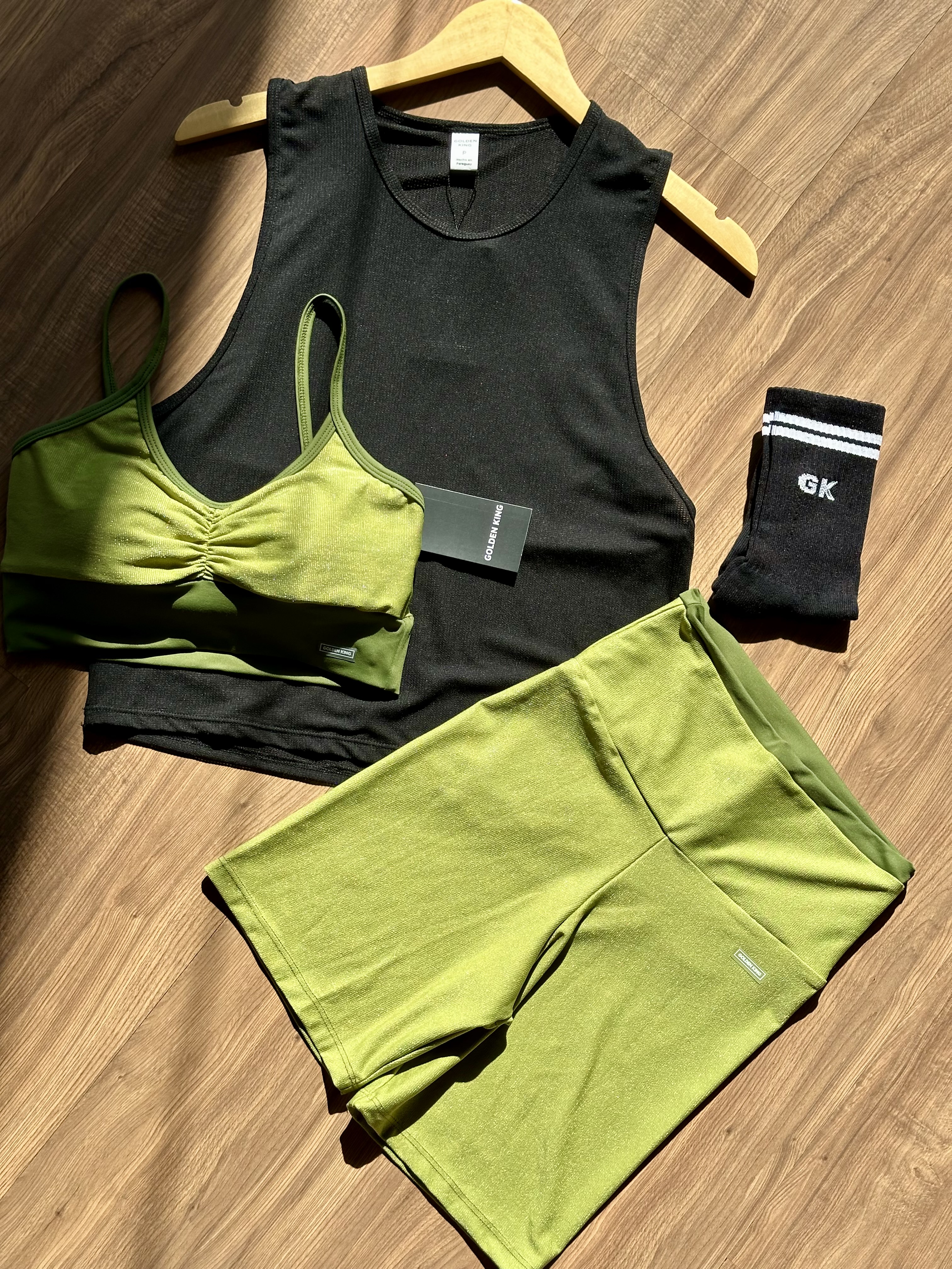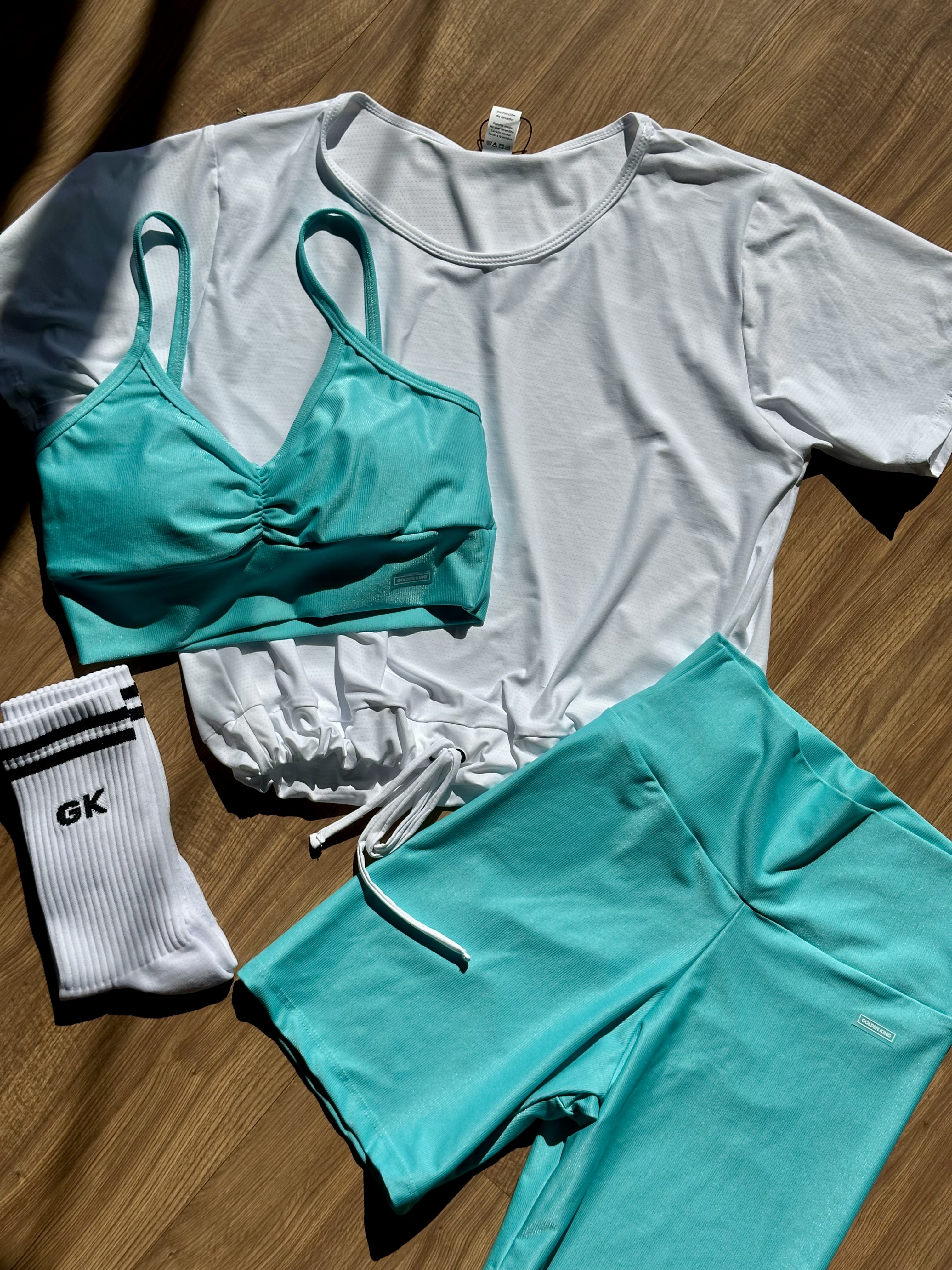Top deportivo con tirantes finos y fruncido en el centro del pecho. Diseño simple, cómodo y ajustado al cuerpo.